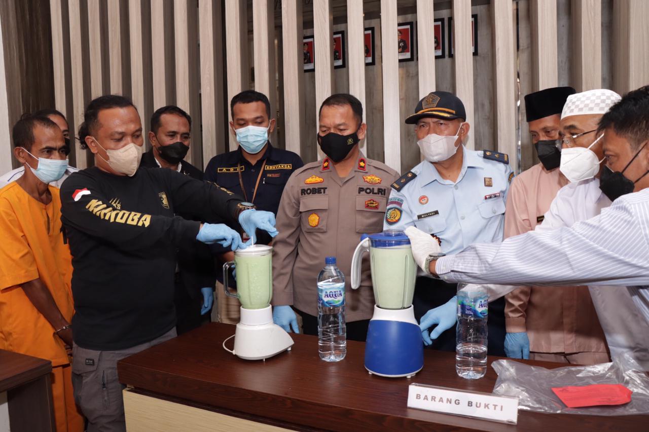 Usai konferensi pers, barang bukti dimusnahkan dengan cara dilarutkan bersama air dan cairan disinfektan, lalu diblender. Setelah itu dibuang ke dalam kloset.